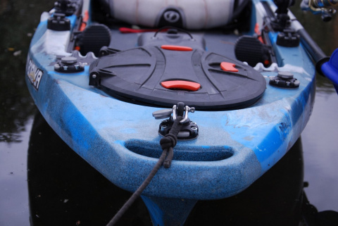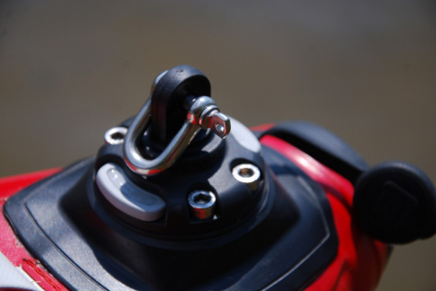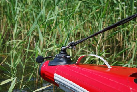 Mocowane na burcie jednostki pływającej przy pomocy uniwersalnego uchwytu oraz platformy montażowej dedykowanej do konkretnej powierzchni np. dmuchanej, twardej, na reling lub na profil typu C.