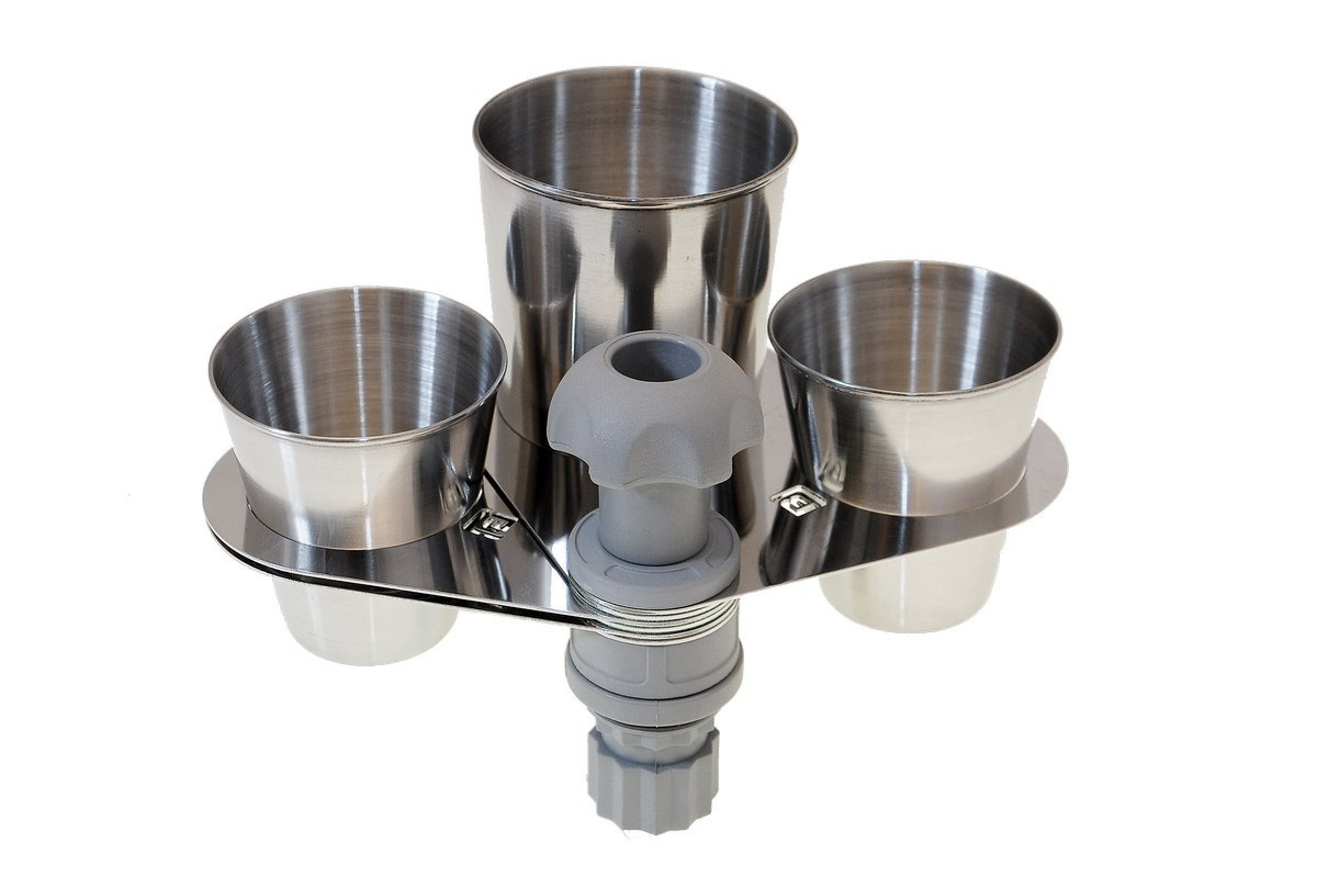 Składany uchwyt na kubki idealnie sprawdzi się na każdej jednostce pływającej przy zastosowaniu dodatkowej platformy (przeznaczonej do konkretnej powierzchni) i uchwytu.