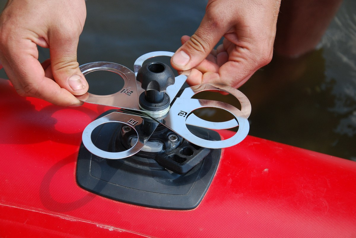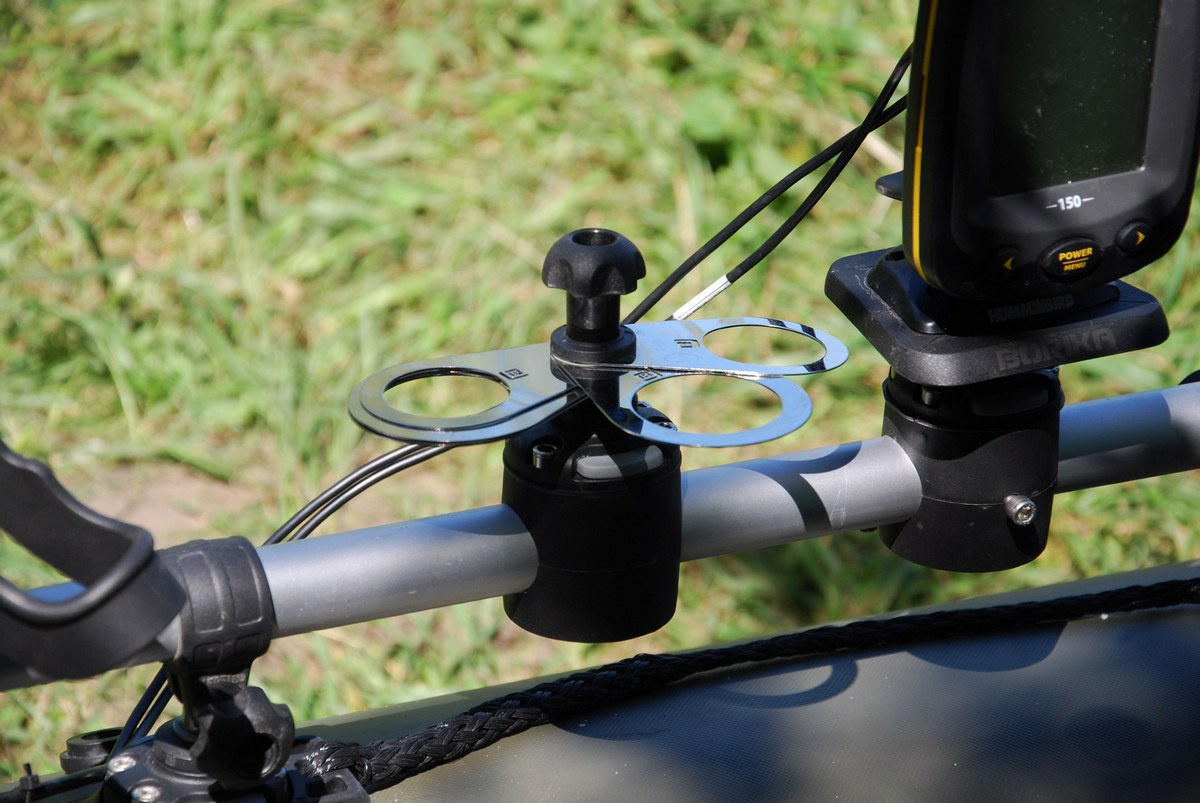 Uchwyt montuje się na burcie jednostki pływającej przy pomocy uniwersalnego uchwytu oraz platformy montażowej przeznaczonej do konkretnej powierzchni (dmuchanej, twardej, na reling lub na profil typu C).