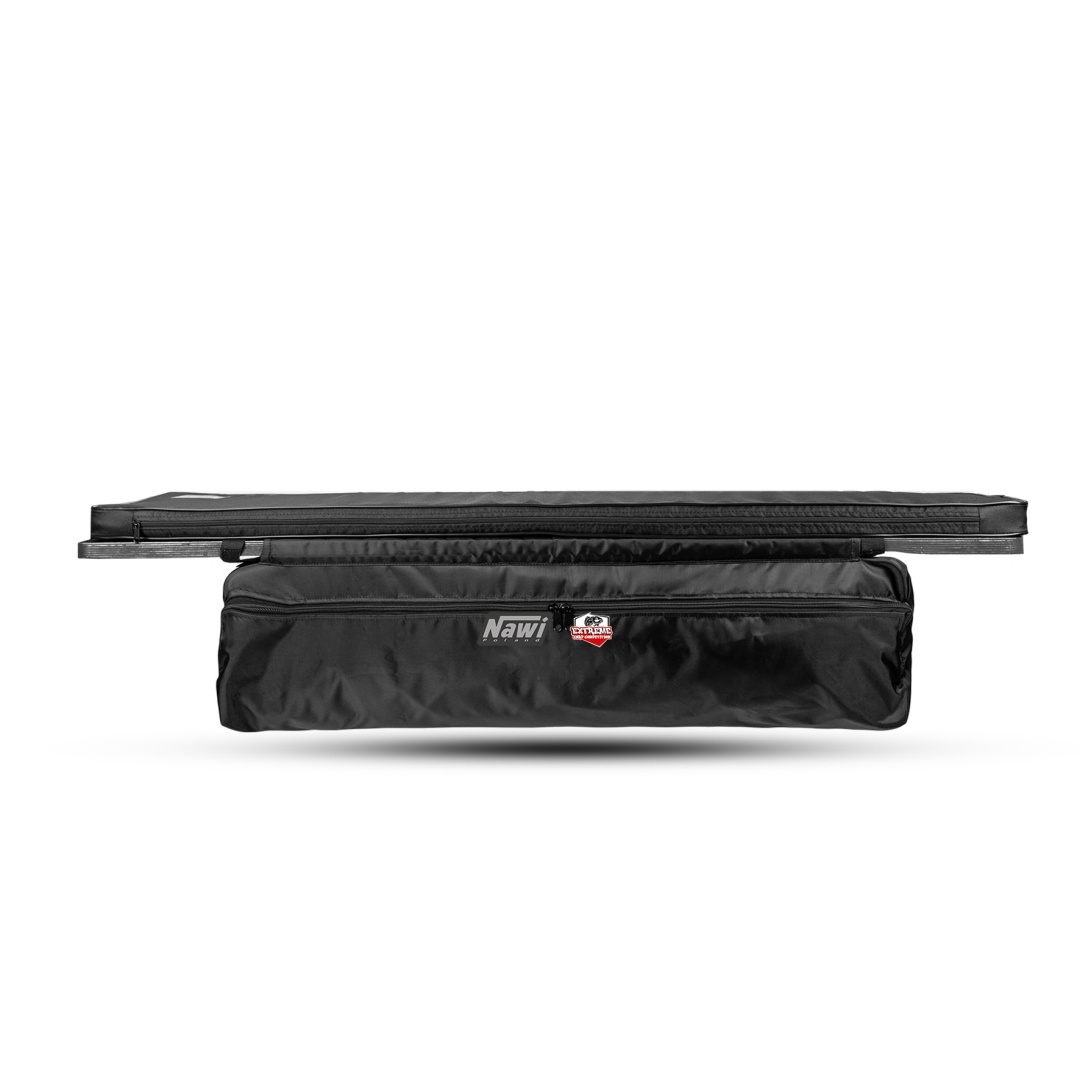 Pokrowiec składa się z torby głównej zamykanej dookoła na zamek, wzbogaconej o rączki transportowe. Do niego za pomocą przyszytych rzepów są zamocowane torby boczne (po prawej i lewej stronie). Dodatkowo każda zamykana jest na rzep. Przez, co futerał jest uniwersalny.